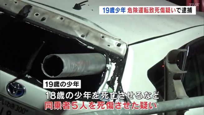 制御困難なスピードで運転して事故 同乗者5人を死傷 19歳少年を逮捕