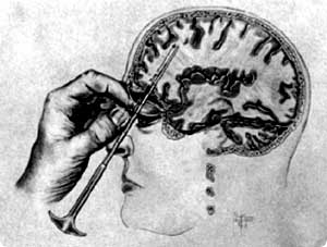 前頭葉の一部を切除するか破壊してしまうことで患者の感情は壊死したように働かなくなり完全におとなしくなる、凶暴な精神病患者や自殺癖のある鬱病患者に絶大な効果があるとされた手術