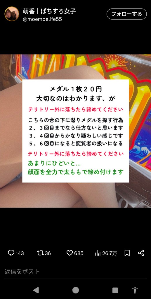 【画像】パチスロ女子、お怒り😡wwwwwwwwwww Twitter Facebook はてブ LINE コピー 2024.08.27 スポンサーリンク 1:それでも動く名無し:2024/08/27(火) 17:24:49.39 ID:7erbt2P30.net 2:それでも動く名無し:2024/08/27(火) 17:26:02.48 ID:7erbt2P30.net ご尊顔 ps://i.imgur.com/N24VKC7.jpeg 3:それでも動く名無し:2024/08/27(火) 17:26:10.41 ID:QHoAR4pG0.net これはやるやつ増えるな 続きを読む