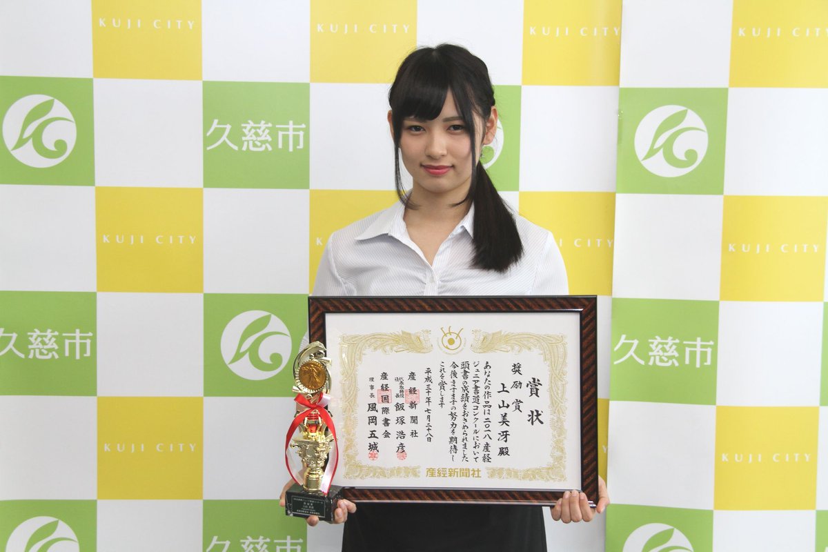 上山さんは「指導してくれた先生、教室に通わせてくれた両親に感謝したい。