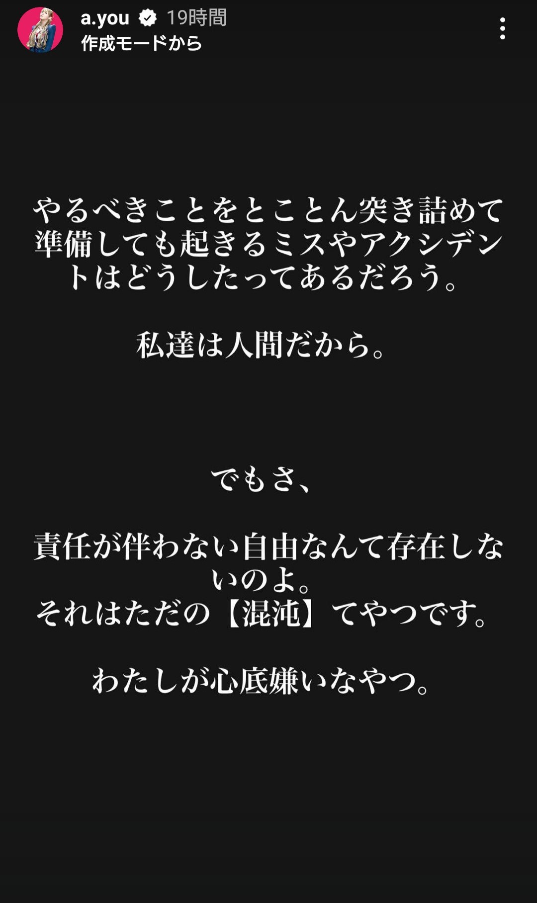 その浜崎だが、福岡公演の1日目を終えた10日深夜に意味深な投稿を公式インスタグラムのストーリーズにアップしていた。