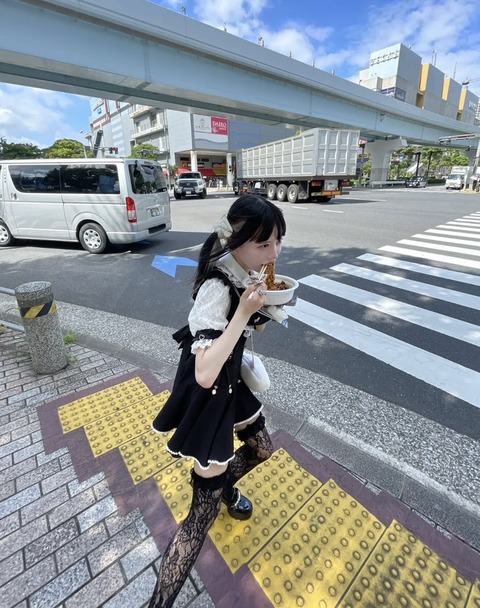【画像】陰好みの女子、横断歩道で焼きそばwwwwwwwww