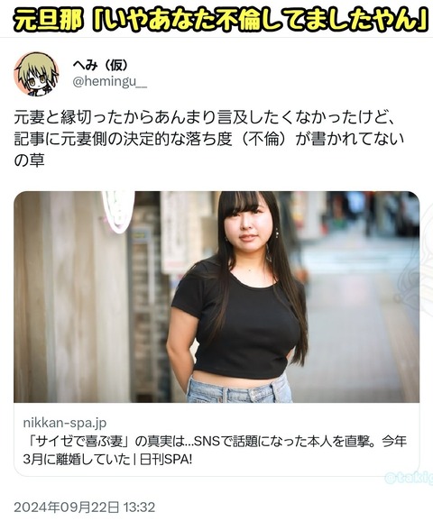 【画像】サイゼで喜ぶ人妻、変わり果てた姿で発見されるwwwwwwwww Twitter Facebook はてブ LINE コピー 2024.09.24 スポンサーリンク 1:以下、?ちゃんねるからVIPがお送りします:2024/09/23(月) 12:31:05.645 ID:bqgPAQdS0.net 5:以下、?ちゃんねるからVIPがお送りします:2024/09/23(月) 12:33:48.855 ID:HHJOHqtu0.net 知性がお胸に持ってかれた 続きを読む