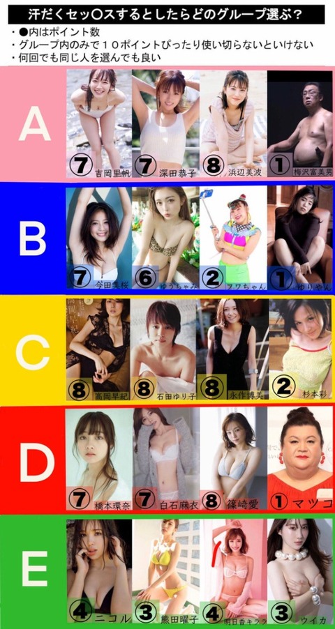 【画像】汗臭い性交するならどのグループ選ぶ??wwwwwwww