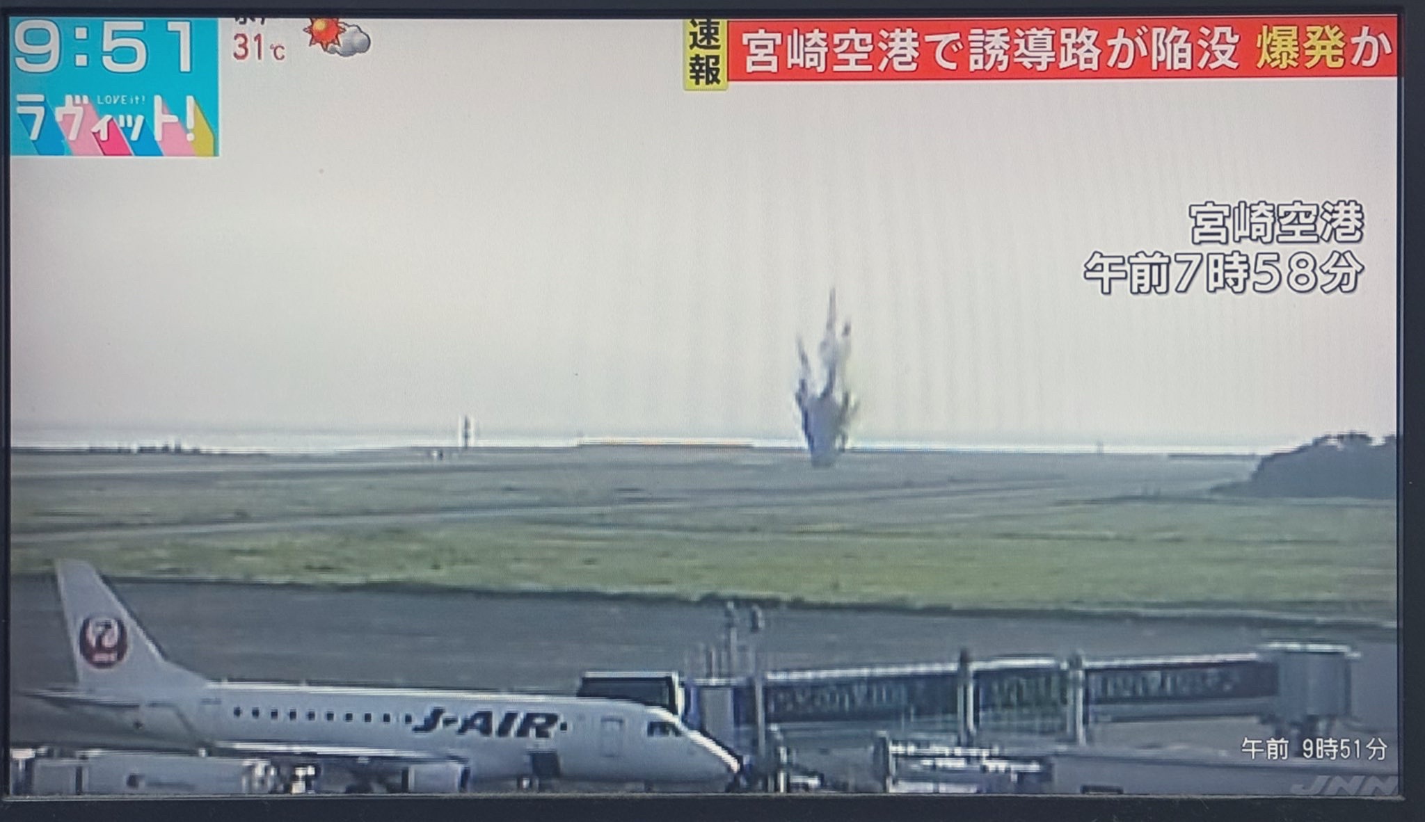 宮崎空港の誘導路に陥没が見つかる 何かが爆発し土煙が吹きあがる様子が映像に 航空機の離着陸見合わせ 再開の見通し立たず