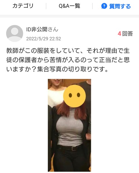 【悲報】女教師さん、お胸がデカすぎてPTAに処罰されてしまう (※画像あり) Twitter Facebook はてブ LINE コピー 2024.10.04 スポンサーリンク 1:以下、?ちゃんねるからVIPがお送りします:2024/05/22(水) 06:58:40.256 ID:toJHQt3IM 2:以下、?ちゃんねるからVIPがお送りします:2024/05/22(水) 06:59:29.913 ID:ayM869nI0 確かに髪色の方が色々言われそう 続きを読む