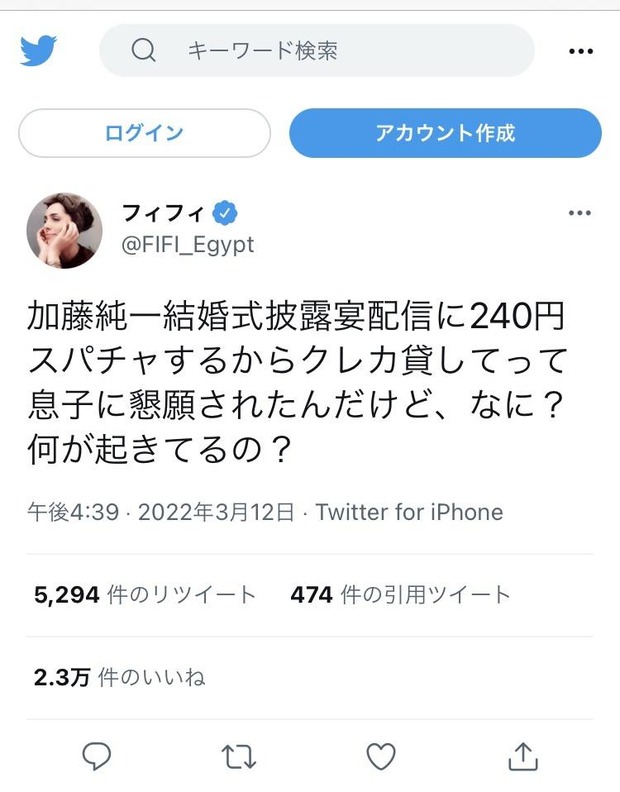 フィフィ「息子から加藤純一に240円スパチャするからクレカ貸してって言われた。なに?何が起きてるの?」