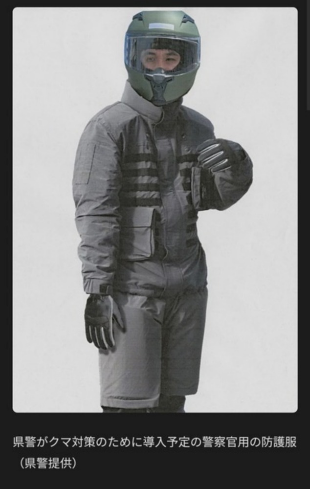 青森県内で今年、クマによる人的被害が相次いだことを受け、県警は4日、クマ対策のための警察官用の防護服を新たに導入することを明らかにした。クマに引っかかれたり、かみつかれた場合を想定し、丈夫な素材で全身を覆う仕様となっている。東北地方の警察で、クマ対策のための防護服を導入するのは、秋田県警に続き2県目。