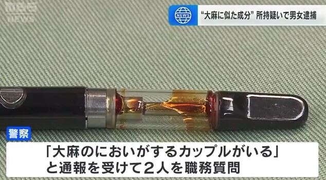 警察が「大麻のにおいがするカップルがいる」との通報を受けて2人を職務質問し、その後、福井容疑者が所持していたリキッド入りのカートリッジから、「HHCP」の成分が検出されたということです。