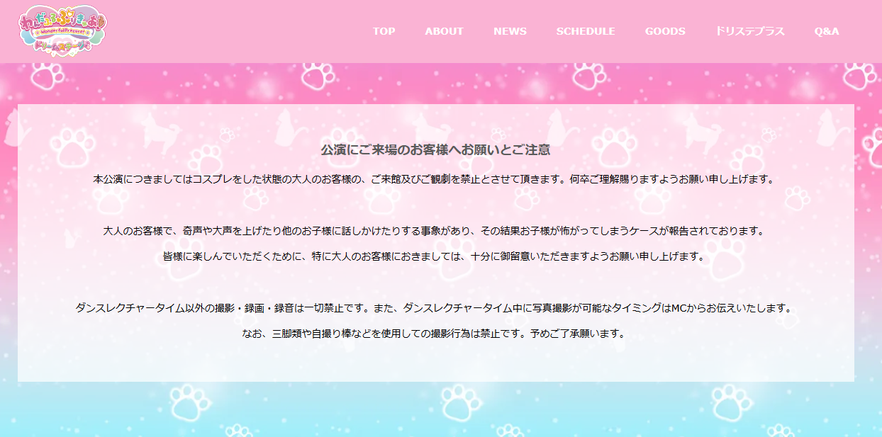 テレビアニメ『わんだふるぷりきゅあ!』のイベント『わんだふるぷりきゅあ! ドリームステージ♪』の公式サイトにて、大人ファンへ向けた注意事項が公開された。