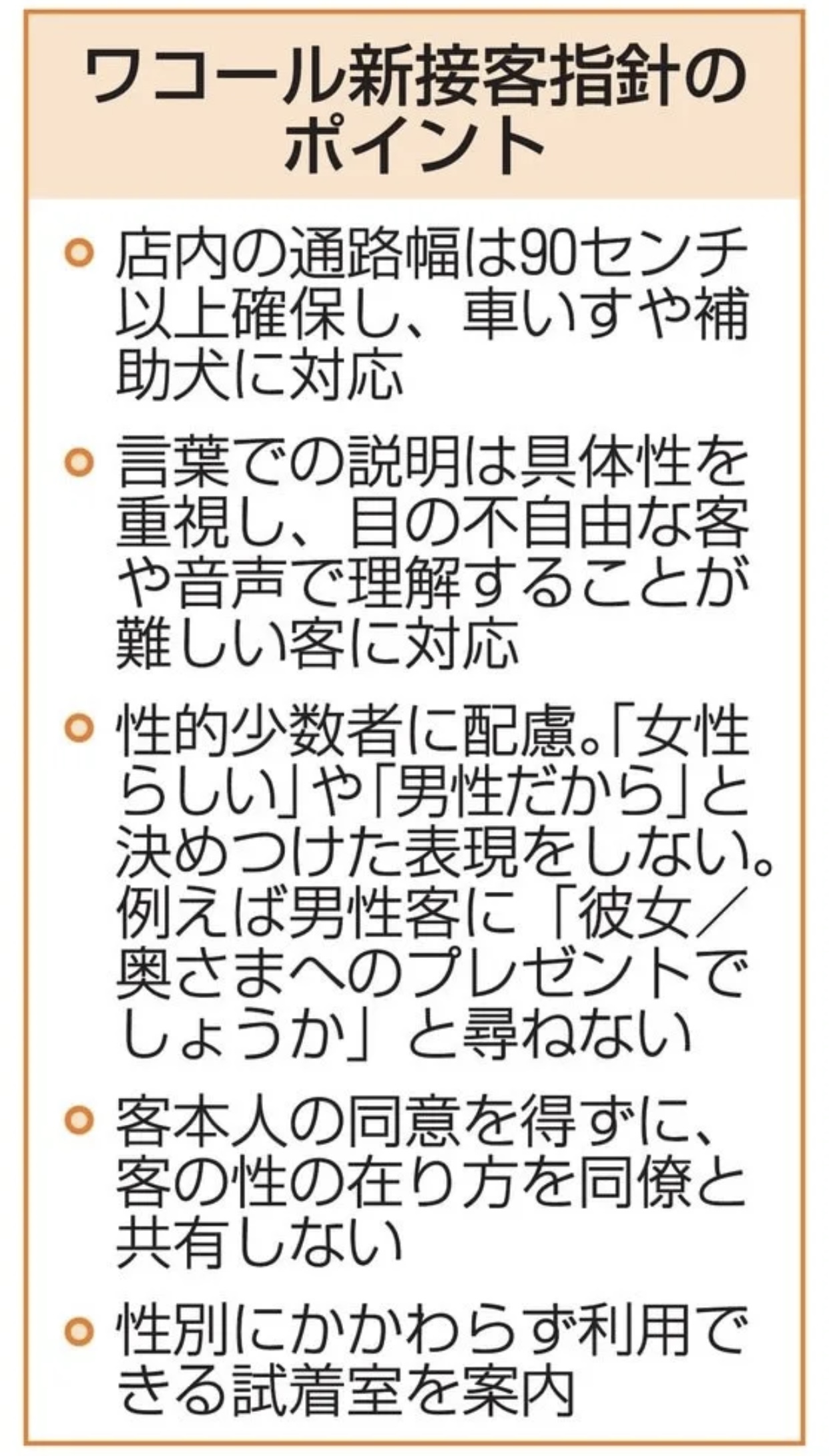 接客に思い込みは禁物、ワコールが新指針 LGBTQ、障害者ら全ての人を尊重し柔軟対応