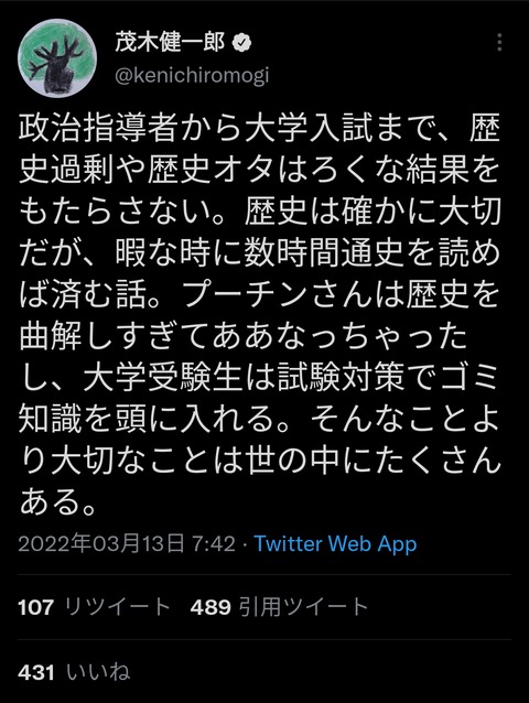 【悲報】茂木健一郎「歴史なんて暇な時間に通史を読めば充分。ゴミ知識。」→歴史オタクブチ切れwwwwwwwww Twitter Facebook はてブ LINE コピー 2022.03.13 スポンサーリンク 1:風吹けば名無し:2022/03/13(日) 17:34:53.09 ID:QdvVRVxoM.net 2:風吹けば名無し:2022/03/13(日) 17:34:59.54 ID:QdvVRVxoM.net https://twitter.com/kenichiromogi/status/1502777143620943872?t=djW0e1OaVxV0SaQS6bohdw&s=19 (deleted an unsolicited ad) 3:風吹けば名無し:2022/03/13(日) 17:35:10.73 ID:CoHQfvHz0.net 頭アハおじさん 続きを読む