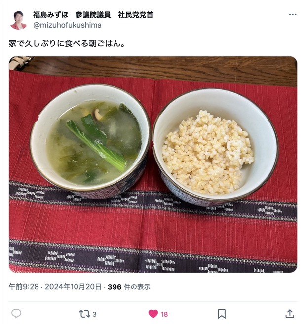 【画像】社民党党首・福島瑞穂さんの朝食 Twitter Facebook はてブ LINE コピー 2024.10.20 スポンサーリンク 1 : 名無しさん@涙目です。 :2024/10/20(日) 09:49:25 ID:3HxXC+YF0●.net転載元スレッド:https://hayabusa3.2ch.sc/test/read.cgi/news/1729385365/ 続きを読む