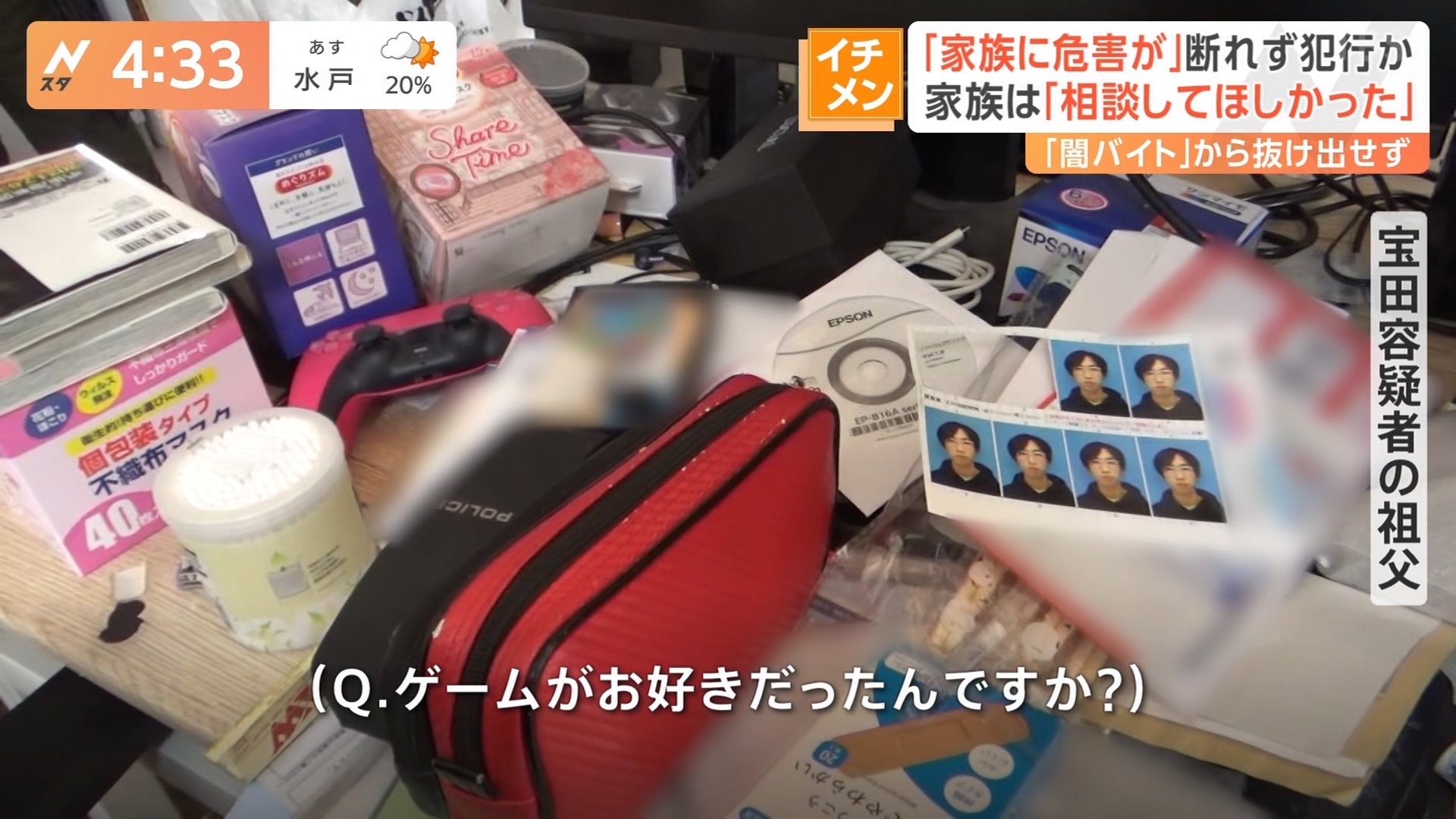 闇バイト強盗殺人の宝田真月容疑者(22)の部屋が公開されてしまう Twitter Facebook はてブ LINE コピー 2024.10.21 スポンサーリンク ◇ 1: 名無し 2024/10/21(月) 16:29:07.54 ID:zRTNsaUX0 ◇ 55: 名無し 2024/10/21(月) 16:45:54.44 ID:Pwj6eYKX0 たからだくんの部屋 ◇ 60: 名無し 2024/10/21(月) 16:47:27.73 ID:GbgV7Eg60 >>55 これはあかんわ趣味に金使いすぎやん 金勘定できない人間は闇バイトとか関係なく破綻する 続きを読む