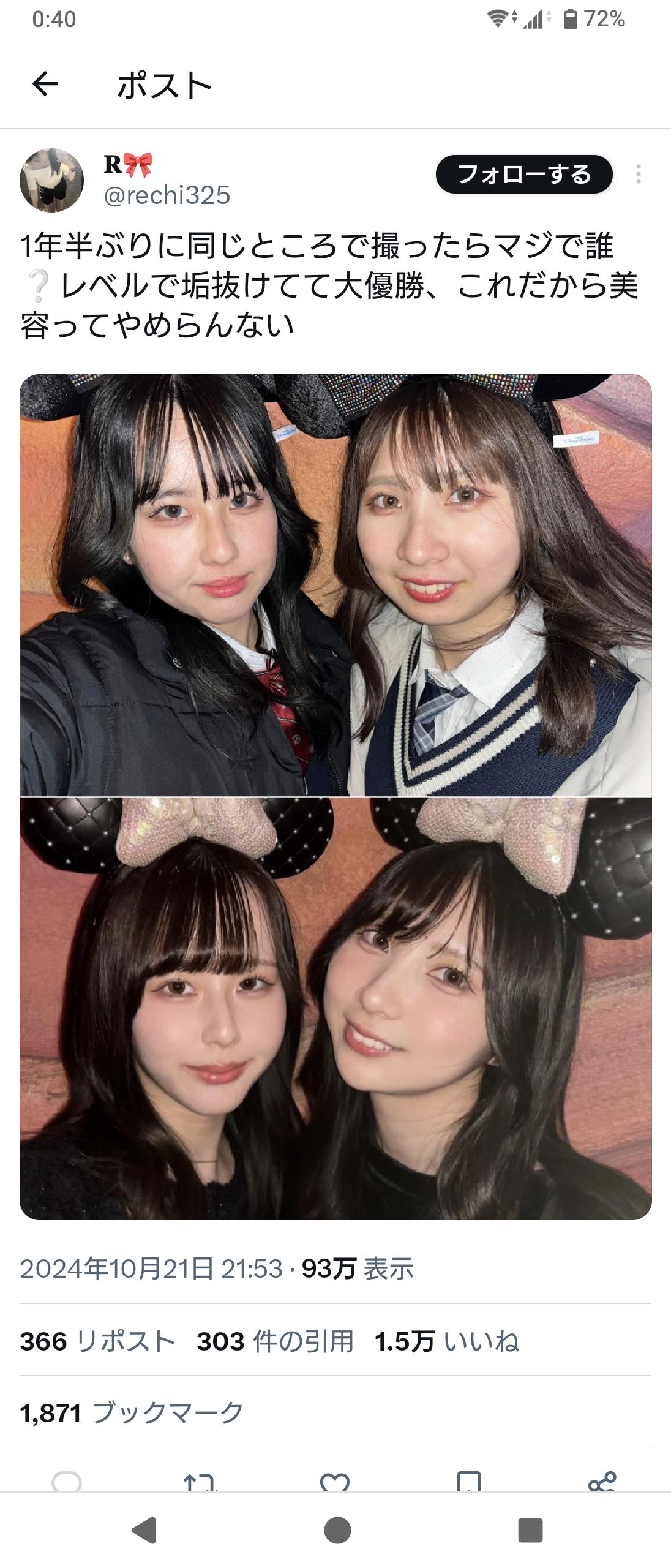 【画像】女の子、1年半で別人レベルに垢抜けて優勝してしまうwwwwwwwwww Twitter Facebook はてブ LINE コピー 2024.10.22 スポンサーリンク 1:それでも動く名無し 警備員[Lv.9]:2024/10/22(火) 00:41:04.35 ID:TQC3VC9p0 2:それでも動く名無し 警備員[Lv.12]:2024/10/22(火) 00:41:34.71 ID:Xv/IsVgN0 加工の違いやろ 3:それでも動く名無し 警備員[Lv.5][新芽]:2024/10/22(火) 00:43:34.84 ID:rDpASAZn0 美容ってのは整形か加工どっちの話や 続きを読む