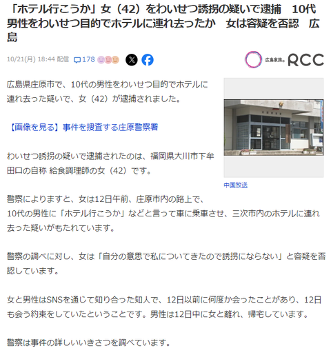 女性さん「ホテル行こうか」少年「うん!」→未成年誘拐で逮捕wwwwwww Twitter Facebook はてブ LINE コピー 2024.10.22 スポンサーリンク 1:それでも動く名無し 警備員[Lv.26]:2024/10/22(火) 13:25:07.26 ID:m5w3iR+K0 まあアウトだよね 2:それでも動く名無し 警備員[Lv.2][新芽]:2024/10/22(火) 13:25:58.71 ID:CQayHuVId 司法が女に甘すぎる 3:それでも動く名無し 警備員[Lv.24]:2024/10/22(火) 13:26:06.62 ID:QHQQ49ul0 しゃーない 男女平等や 6:それでも動く名無し 警備員[Lv.27][苗]:2024/10/22(火) 13:26:29.08 ID:ofvSlcY30 42はキツイやろ 続きを読む
