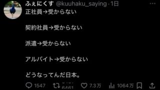 【画像】Xユーザー「正社員も契約社員も派遣もアルバイトも全部受からない どうなってんだ日本」