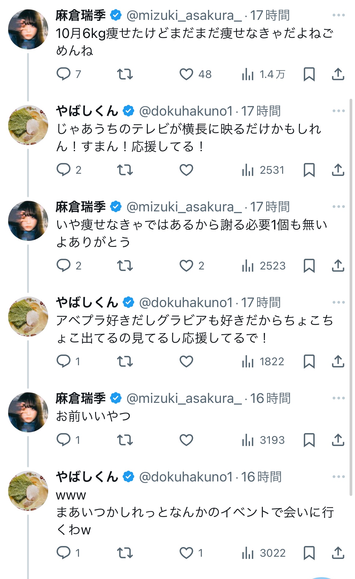 【悲報】グラビアアイドルに誹謗中傷マン、本人登場でコロっと手のひら返しwwwwwwwww Twitter Facebook はてブ LINE コピー 2024.11.07 スポンサーリンク 1:それでも動く名無し 警備員[Lv.6][新芽]:2024/11/06(水) 17:54:05.63 ID:Hk6lw8240 チョロすぎて草 ↓ 本人登場 2:それでも動く名無し 警備員[Lv.47][苗]:2024/11/06(水) 17:55:01.96 ID:tF/MXQJ30 え、なにこれは・・・ 4:それでも動く名無し 警備員[Lv.12][芽]:2024/11/06(水) 17:55:17.82 ID:ccWLTjyg0 最後クソきもくて草 続きを読む