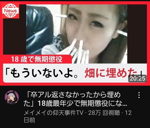 【画像】18歳で無期懲役になった女の顔がこちらwwwwwwwww Twitter Facebook はてブ LINE コピー 2024.11.09 スポンサーリンク 1:以下、?ちゃんねるからVIPがお送りします:2024/11/09(土) 00:27:34.047 ID:n63lE10D0.net 船橋18歳少女生き埋め殺害事件 2:以下、?ちゃんねるからVIPがお送りします:2024/11/09(土) 00:28:16.108 ID:R0/Vm77d0.net 知らん事件や 続きを読む