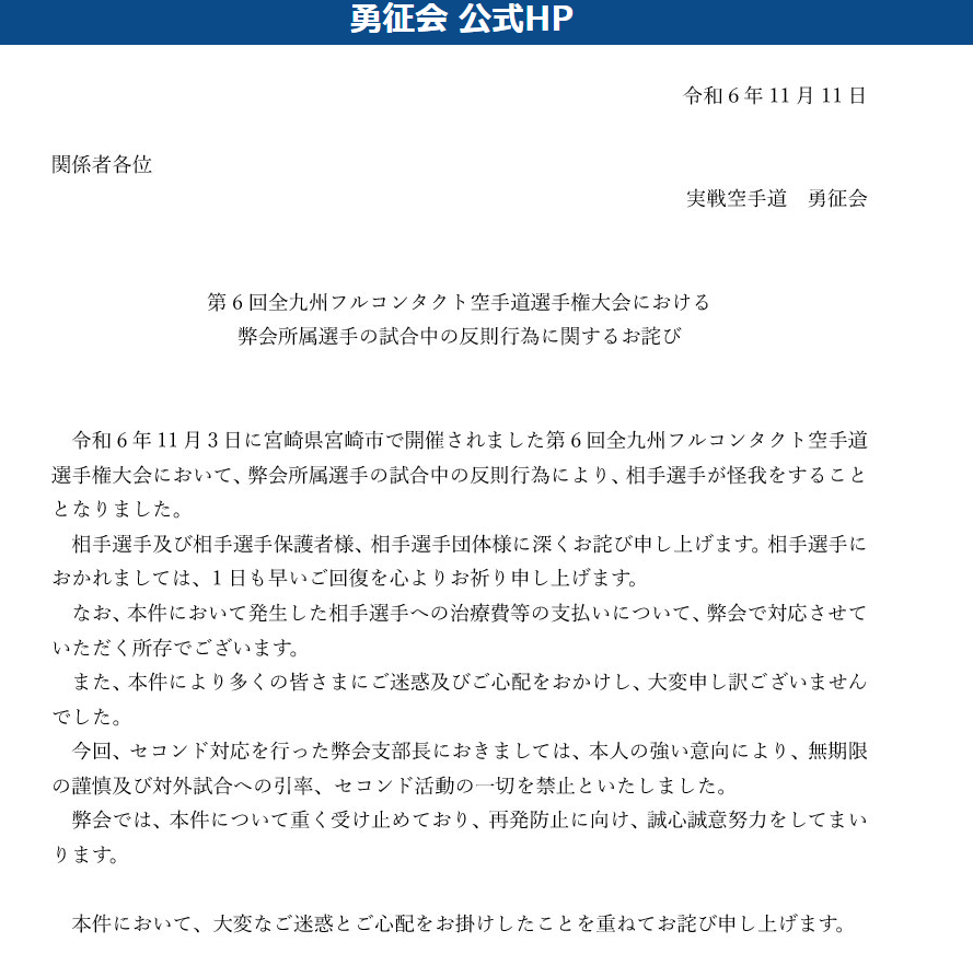 空手道場代表「悪気はまったくなかったと考えていますw」 pic.twitter.com/JffrQJ8li8