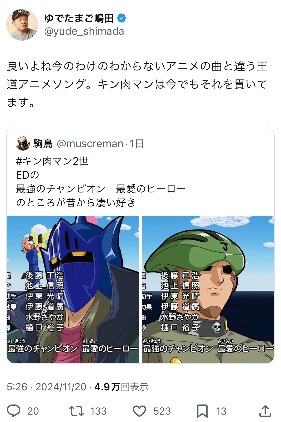 【悲報】有名漫画家、今のアニメの曲はわけの分からないと発言 Twitter Facebook はてブ LINE コピー 2024.11.20 スポンサーリンク ◇ 1: 名無し 2024/11/20(水) 11:14:06.53 ID:ygG/Dse40HAPPY またこいつかって思ったでしょ? ◇ 3: 名無し 2024/11/20(水) 11:15:38.15 ID:xMgwsSIo0HAPPY さすが名誉野暮野郎 ◇ 6: 名無し 2024/11/20(水) 11:18:38.75 ID:IZH4acx2MHAPPY 肉界隈最大のアンチやんけ 続きを読む