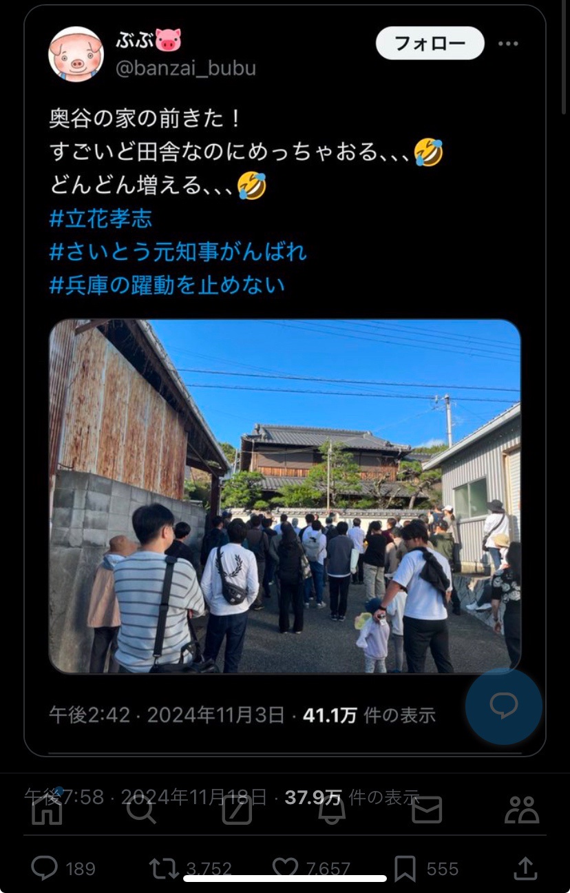 【画像】兵庫県民「百条委員会委員長の家へ立花孝志の演説聞きに子供連れて行ったろ!」 Twitter Facebook はてブ LINE コピー 2024.11.21 スポンサーリンク 1:それでも動く名無し:2024/11/21(木) 12:50:52.41 ID:rG1tUiPO0.net 3:それでも動く名無し:2024/11/21(木) 12:51:47.76 ID:f7+tl0v50.net 頼むから雇われのサクラであってほしいわ 続きを読む