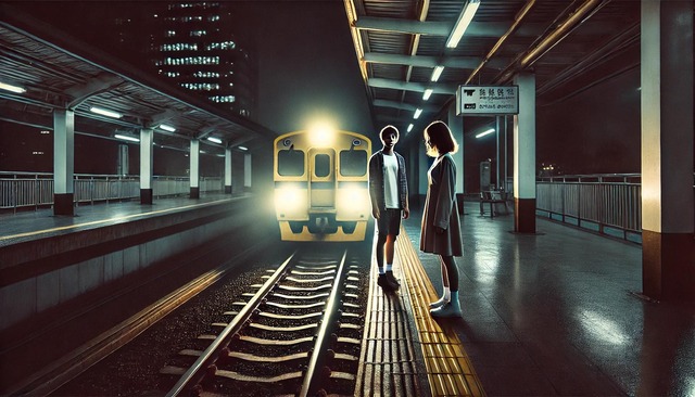 電車が来る方向にカップルが居たので自然とカップルも視界に入っていた。
