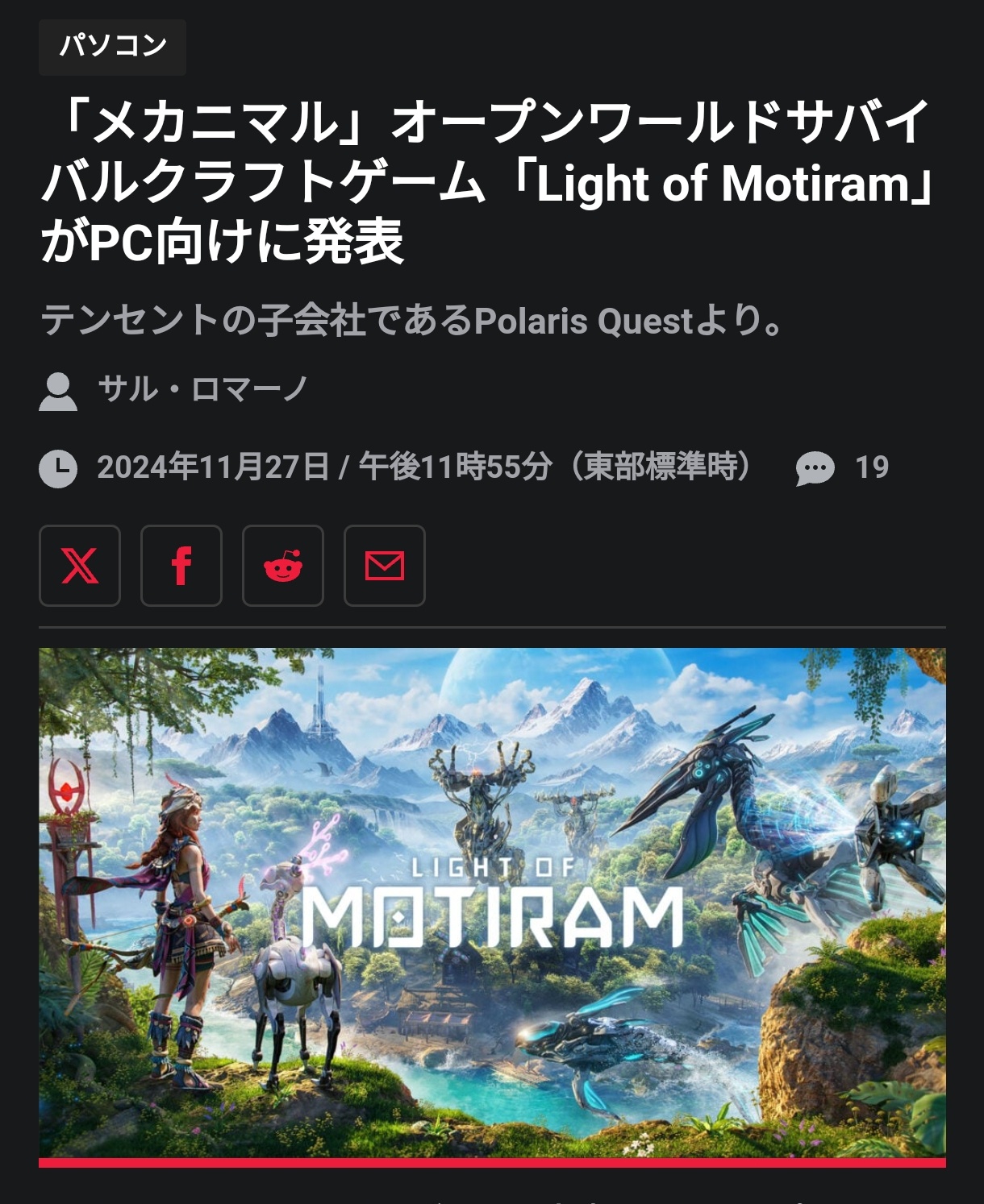 『Horizon』や『モンハン』を彷彿させるオープンワールドサバイバル『LIGHT OF MOTIRAM』登場!