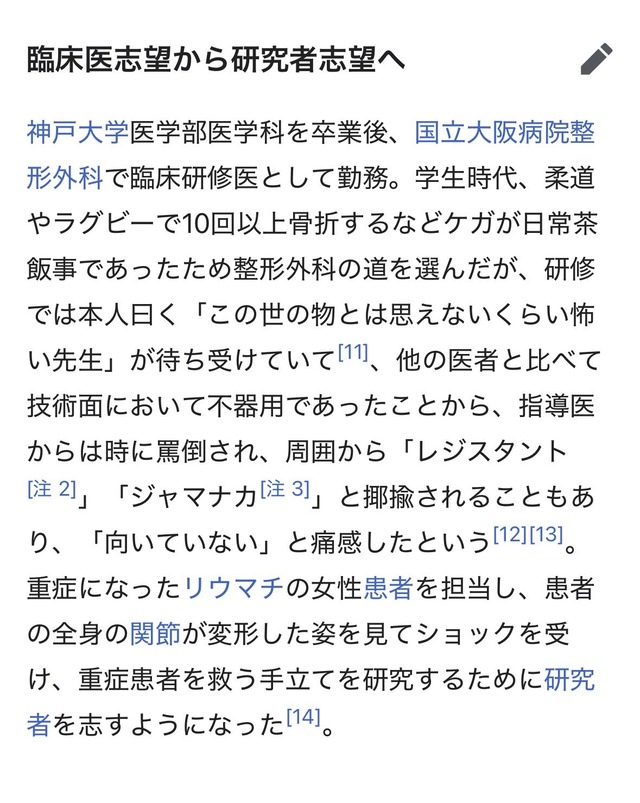 IPS細胞開発者・山中教授の研修医時代のあだ名「ジャマナカ」「レジスタント」ここから研究の道に進んでノーベル生理学・医学賞を受賞するの凄すぎる Twitter Facebook はてブ LINE コピー 2024.12.02 スポンサーリンク 1: それでも動く名無し 警備員[Lv.35] 2024/12/02(月) 10:00:49.43 ID:EpWQmVF20 「ジャマナカ」 「レジスタント」 続きを読む