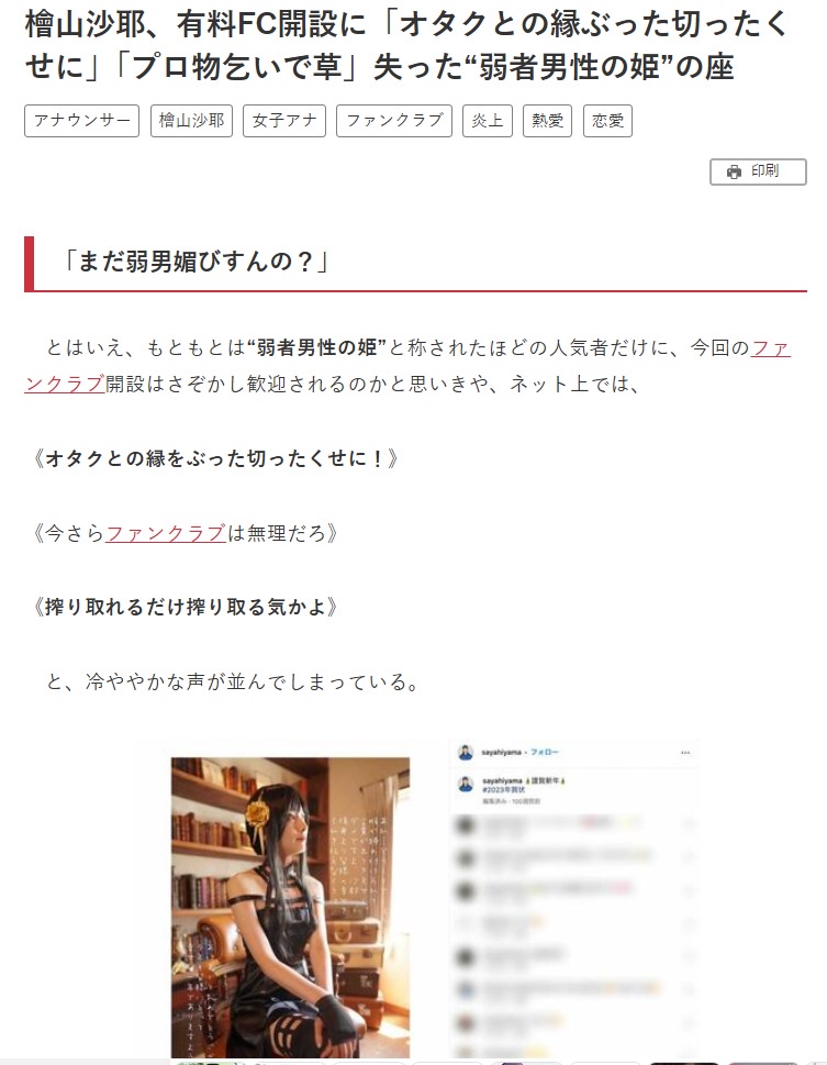 【悲報】檜山沙耶(おさや・31歳)弱男にイチャモン付けられるwwwwwwwwww Twitter Facebook はてブ LINE コピー 2024.12.06 スポンサーリンク 1:それでも動く名無し 警備員[Lv.3][新芽]:2024/12/05(木) 21:28:56.03 ID:/J7il7p70 「まだ弱男媚びすんの?」 2:それでも動く名無し 警備員[Lv.2][新芽]:2024/12/05(木) 21:30:56.83 ID:dRXpS34j0 おさや… 4:それでも動く名無し 警備員[Lv.9][新芽]:2024/12/05(木) 21:33:02.88 ID:DlTaRRF90 割とマジでこのファンクラブに金払う人間ってどういう思考なんだ? お前が金出してるその女と好き放題性交してる男がいるんだぞ? 続きを読む