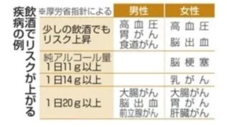 少量飲酒でも健康リスク 初の指針、影響に男女差  純アルコール量に着目を