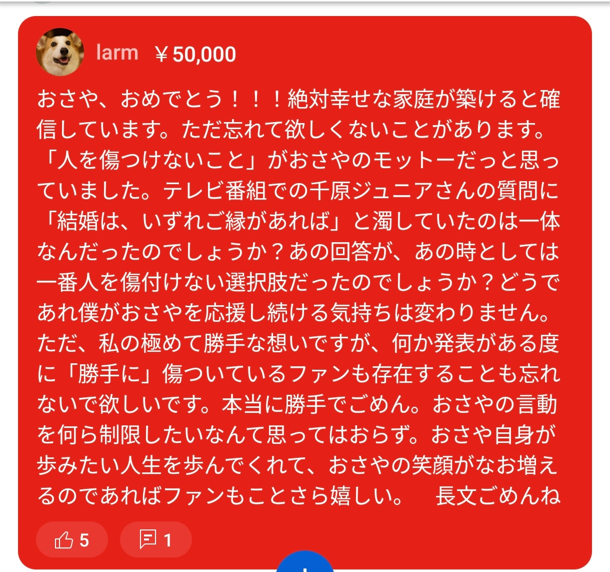 【悲報】檜山沙耶(おさや)ファン、結婚報道に5万円払ってお気持ち表明wwwwwwwwwwww Twitter Facebook はてブ LINE コピー 2024.12.13 スポンサーリンク 1:それでも動く名無し:2024/12/13(金) 20:15:07.02 ID:FG1Q99b80 3:それでも動く名無し:2024/12/13(金) 20:17:56.28 ID:xVRREczG0 うっわキンモ 4:それでも動く名無し:2024/12/13(金) 20:19:05.18 ID:20vCTqJd0 よわよわ男性さんかわいそう お気持ち表明するために5万円も払わないといけないなんて 続きを読む