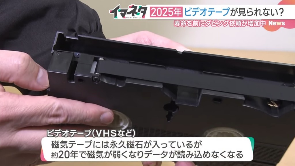 VHS、終了のお知らせ Twitter Facebook はてブ LINE コピー 2024.12.17 スポンサーリンク ◇ 1: 名無し 2024/12/16(月) 23:00:13.45 ID:UGmpxs480 来年で磁気テープが寿命を迎える模様 ◇ 3: 名無し 2024/12/16(月) 23:01:42.11 ID:JPX45aAxp CDもボロボロやで ◇ 6: 名無し 2024/12/16(月) 23:02:27.98 ID:hcU7l2Gp0 >>3 これマジ困る 続きを読む