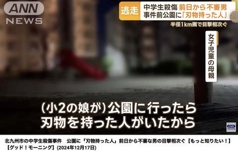 中学生2人死傷事件 近くの公園で不審な男女…ベンチに包丁 目撃情報相次ぐ 広がる不安に厳戒態勢 福岡・北九州市