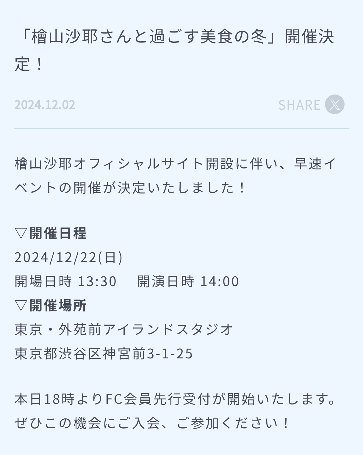檜山沙耶(おさや)のイベントで干し芋1枚が配給される Twitter Facebook はてブ LINE コピー 2024.12.23 スポンサーリンク ◇ 1: 名無し 2024/12/22(日) 22:21:39.10 ID:KLlyu+BT0 バナナのほうがいいよな ◇ 3: 名無し 2024/12/22(日) 22:22:42.04 ID:8eeV9bAO0 戦時中か? ◇ 12: 名無し 2024/12/22(日) 22:26:59.52 ID:andjEYt80 干し芋一枚は草 続きを読む