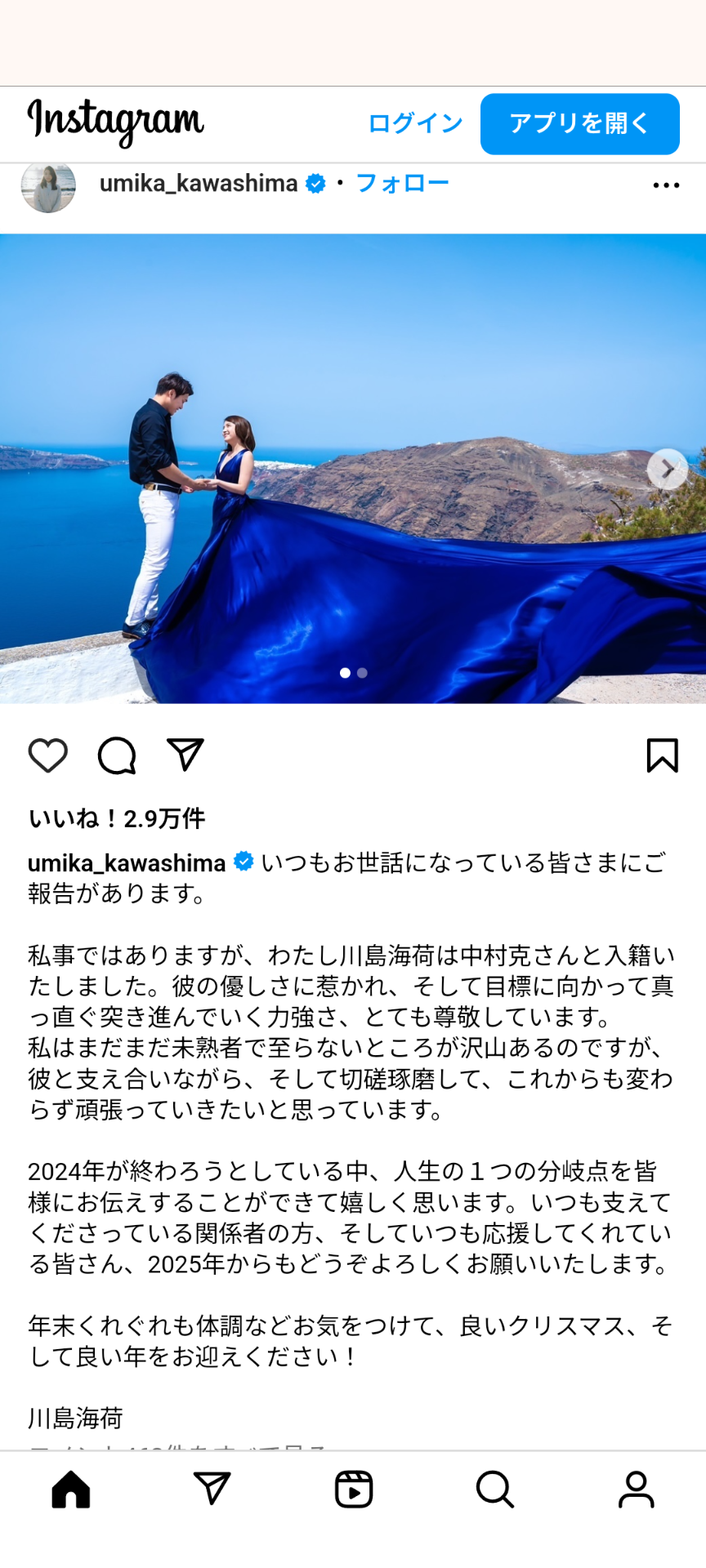 川島海荷「結婚しました」 (※画像あり) Twitter Facebook はてブ LINE コピー 2024.12.24 スポンサーリンク 1:それでも動く名無し:2024/12/23(月) 15:28:35.91 ID:xXDboHzH0 3:それでも動く名無し:2024/12/23(月) 15:29:28.81 ID:6FkhYF1w0 よかったね^^^ 5:それでも動く名無し:2024/12/23(月) 15:30:29.47 ID:9tmlG7zdH 番組の企画とかじゃなくて? 続きを読む