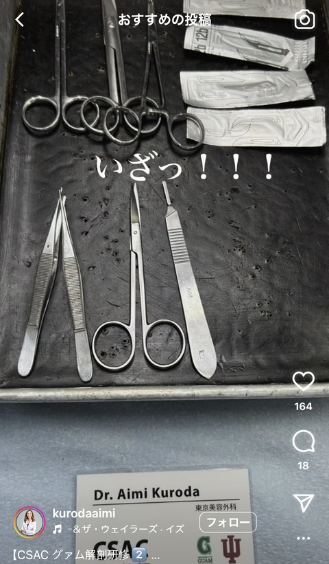 【画像】まんさん、解剖実習でやらかすwwwwwwwwwwww Twitter Facebook はてブ LINE コピー 2024.12.25 スポンサーリンク 1:それでも動く名無し:2024/12/24(火) 12:06:20.89 ID:BkYCPS4m0EVE.net 2:それでも動く名無し:2024/12/24(火) 12:06:55.62 ID:M3FN8+AX0EVE.net 草 3:それでも動く名無し:2024/12/24(火) 12:07:29.80 ID:crU/GjQD0EVE.net 説明してくれんとどういうやらかしかわからんやろ 65:それでも動く名無し:2024/12/24(火) 12:37:38.00 ID:l5v0szE50EVE.net >>3 クッソ不謹慎な発言 別画像だと検体ガッツリフレームイン 続きを読む