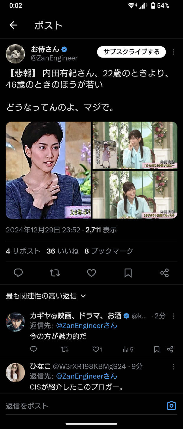 【画像】内田有紀さん、22歳のときより、46歳のときのほうが若い Twitter Facebook はてブ LINE コピー 2024.12.30 スポンサーリンク 1 : 山上徹也 :2024/12/30(月) 00:58:12 ID:fXVGaOxB0【悲報】 内田有紀、22歳のときより、46歳のときのほうが若い。 pic.twitter.com/LkEeAgFivf— お侍さん (@ZanEngineer) December 29, 2023転載元スレッド:https://hayabusa3.2ch.sc/test/read.cgi/news/1735487892/ 続きを読む
