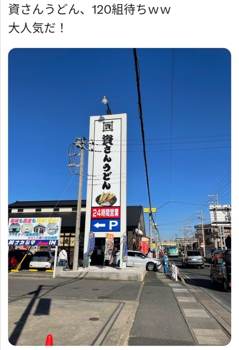 【限界突破】資さんうどん(千葉)、なんと120組待ちへ… (※画像あり) Twitter Facebook はてブ LINE コピー 2025.01.04 スポンサーリンク 1:それでも動く名無し:2025/01/03(金) 21:53:06.19 ID:jecfMrnx0 2:それでも動く名無し:2025/01/03(金) 21:53:50.65 ID:jecfMrnx0 九州やと普通のうどんやけど関東だと絶品なんかね 20: 警備員[Lv.9][新]:2025/01/03(金) 21:59:36.97 ID:o3zgFwg/0 >>2 福岡だけやろ 4:それでも動く名無し:2025/01/03(金) 21:54:04.81 ID:1PHB/RGz0 普通は並んでまでうどんなんか食べたくないけどな 続きを読む