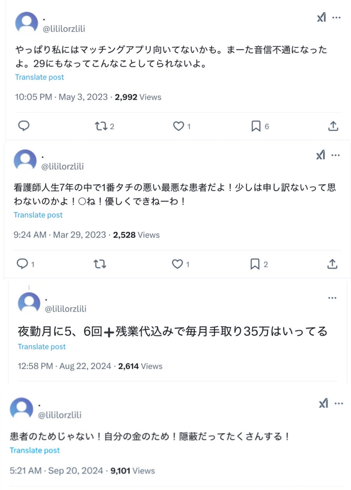激ヤバな投稿を繰り返す看護師アカが見つかる