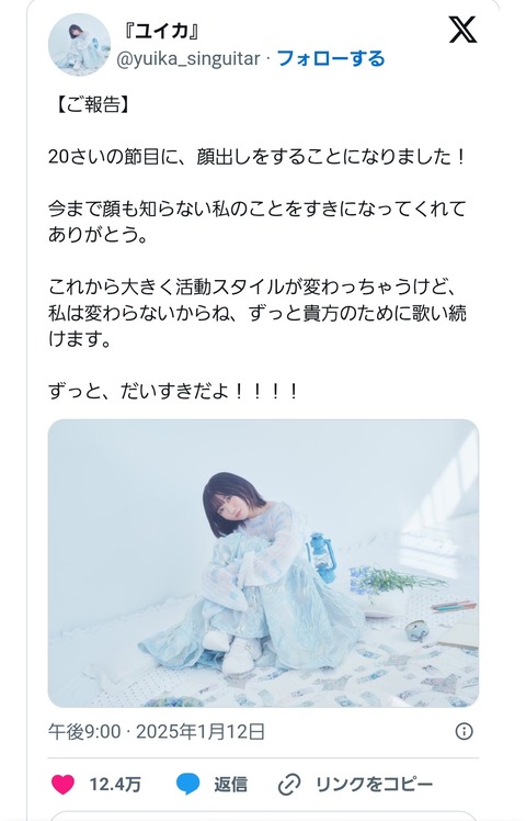 これまで顔出ししていなかったシンガー・ソングライターの『ユイカ』がついに顔出し【画像】
