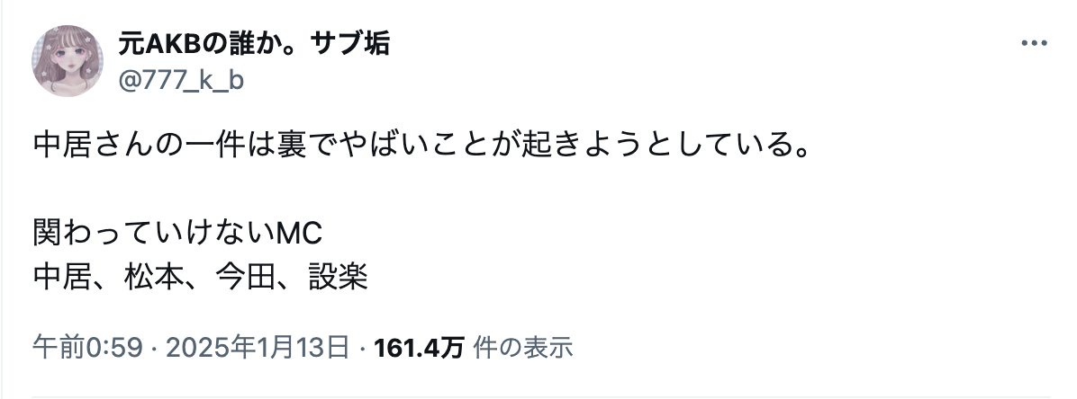 【闇深】元AKB「中居、松本、今田、設楽は関わってはいけないMC」 Twitter Facebook はてブ LINE コピー 2025.01.15 スポンサーリンク 1: (庭) (7級) [US]:2025/01/15(水) 19:38:10.99 BE:187477461-2BP(2000) http://5ch.net/ 画像 VIPQ2_EXTDAT: none:none:1000:512:: EXT was configured 3:名無しさん@涙目です。(茸) [US]:2025/01/15(水) 19:39:35.90 性交強要MC? 続きを読む