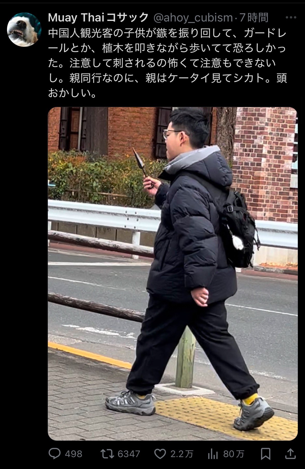 【画像】中国人観光客のクソガキ、クナイを振り回して日本の街を散歩wwwwwwwwwwww Twitter Facebook はてブ LINE コピー 2025.01.17 スポンサーリンク 1:それでも動く名無し:2025/01/16(木) 19:44:59.97 2:それでも動く名無し:2025/01/16(木) 19:45:15.41 ヒエッ… 3:それでも動く名無し:2025/01/16(木) 19:45:34.42 警察は動かない模様 続きを読む
