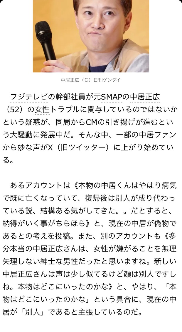【悲報】中居のファン、現実逃避し始める Twitter Facebook はてブ LINE コピー 2025.01.20 スポンサーリンク 1 : 以下、?ちゃんねるからVIPがお送りします :2025/01/20(月) 11:59:00 ID:l1liYVfv0.net一部ファンが現実逃避? 中居正広“別人疑惑”再燃…「本人すでに死亡」と考える人々が現れる|日刊ゲンダイDIGITALhttps://www.nikkan-gendai.com/articles/view/geino/366474本物の中居は既に亡くなっているらしい転載元スレッド:https://viper.2ch.sc/test/read.cgi/news4vip/1737341940/ 続きを読む