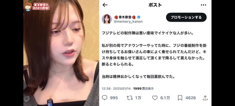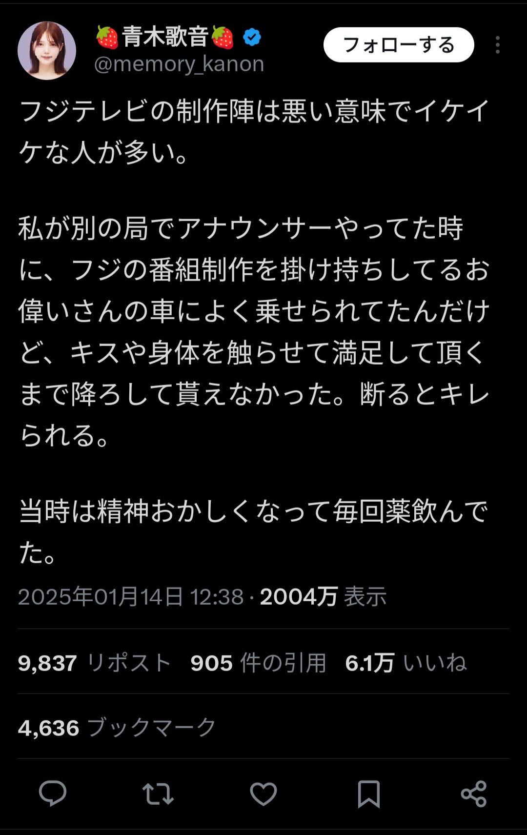 【画像】フジテレビ、また暴露されるwwwwww Twitter Facebook はてブ LINE コピー 2025.01.21 スポンサーリンク 1:それでも動く名無し:2025/01/21(火) 01:43:51.89 ID:48HzQp5B0 キスをして満足するまで車から降ろさない 続きを読む
