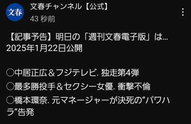 — 週刊文春 (@shukan_bunshun) January 21, 2025