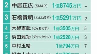 【速報】中居正広さん、21年前の31歳の時点で既に年1.8億円も納税していたと判明