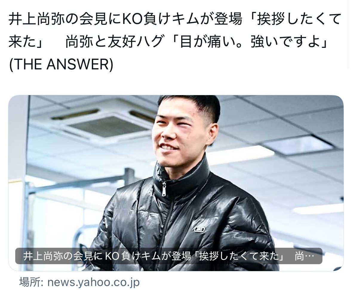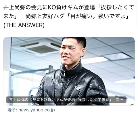 井上尚弥の対戦相手だった韓国人の人生wwwwwwwww Twitter Facebook はてブ LINE コピー 2025.01.26 スポンサーリンク 1:以下、?ちゃんねるからVIPがお送りします:2025/01/26(日) 00:09:46.762 ID:vRWECFlp0 頑張れ 2:以下、?ちゃんねるからVIPがお送りします:2025/01/26(日) 00:11:20.213 ID:e9e98e8g0 苦労人だな 3:以下、?ちゃんねるからVIPがお送りします:2025/01/26(日) 00:12:14.246 ID:tZrM1tAD0 苦労人だな 続きを読む