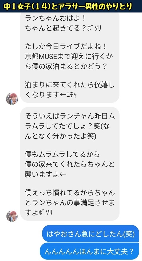 【画像】中1女子「性的な目で見てくる27歳のオッサン、ほんまに気持ち悪い…」 Twitter Facebook はてブ LINE コピー 2025.01.26 スポンサーリンク 1:それでも動く名無し:2025/01/25(土) 03:23:46.21 ID:wj58qkE70.net 2:それでも動く名無し:2025/01/25(土) 03:25:56.93 ID:em4yjmXB0.net 中1にこれは普通にアウトや 113:それでも動く名無し:2025/01/25(土) 05:03:51.61 ID:yFyC0Hy90.net >>2 こんなん中1じゃなくてもアウトだわガイジ 続きを読む