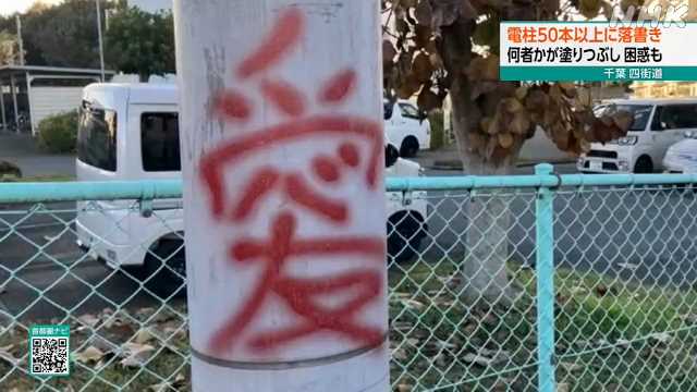 先月、千葉県四街道市の住宅街にある50本以上の電柱で落書きが相次いで見つかった問題で、